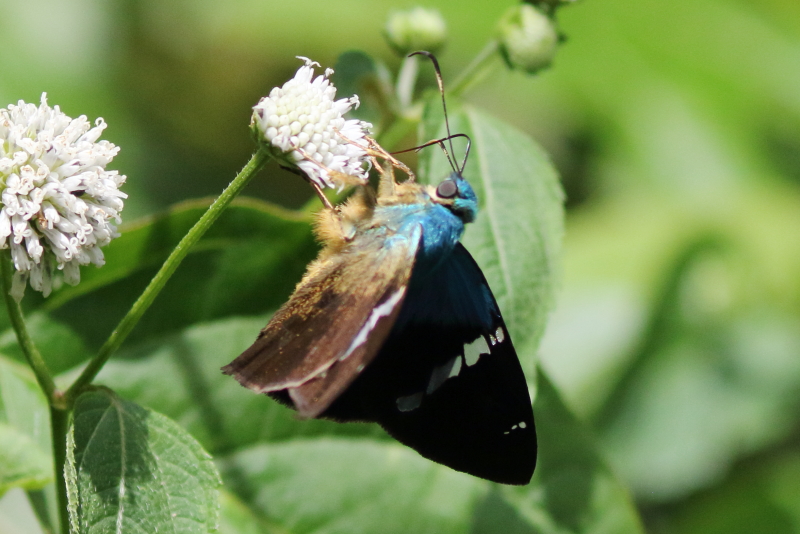 朝と昼、バタフライングに出発する前にロッジ周辺の花や茂みをチェックします。ほぼ同じ種が毎日集まってきますが、その数は半端なく、見ているだけで幸せになりました。パッリオルムアオネオオセセリはずっとフルゲラートルアオネオオセセリだと思っていたのですが、翅裏前縁基部に白い三日月紋がないことに気づいて後日訂正しました。