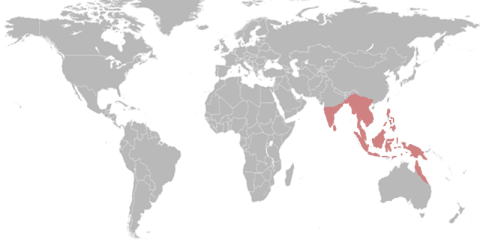 亜種spp : helicon (Sulawesi, Talaut, Banggai, Sula, Maluku) caracalla (Waigeu, Misool, West Irian - Papua, Darnley I., New Britain, New Ireland) hyllus (Australia (Cape York - Cooktown)) merguiana (Sikkim to Myanmar, Yunnan, Thailand, Laos, Cambodia, Vietnam, Hainan,