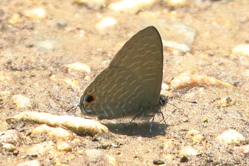 メモmemo : タイ北部で出会いました。前翅翅裏亜外縁の波線の並びが支脈ごとに少しずつずれていくのが特徴でしょうか。ニセウラナミシジミCatopyrops ancyraに似ていますが、オレンジにかこまれた肛角部の黒丸は大きく、その下にはほとんどオレンジがないなどの違いがみられます。