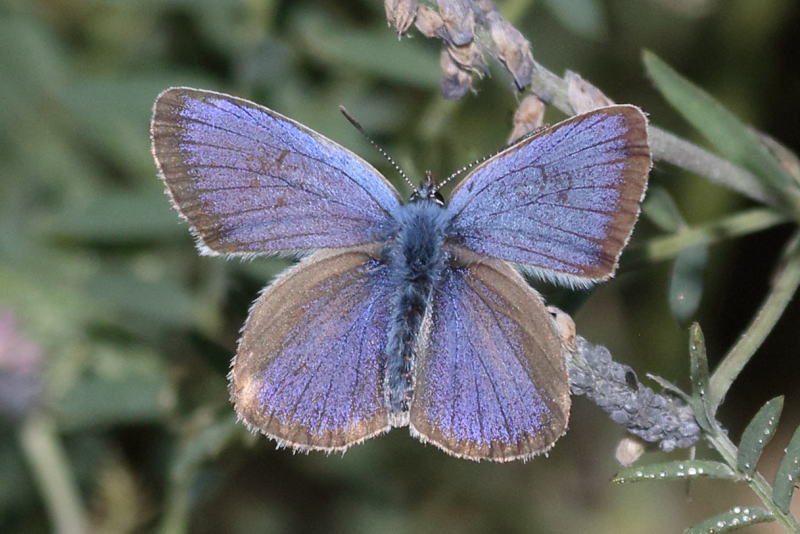 メモmemo : ヨーロッパでは南ギリシャのMt Chelmosでしか見られません。翅背面のブルーは紫がかっています。外縁の太目の茶色がヒメシジミSilver-studded Blueに似ていますが、翅裏の模様はまったく違います。