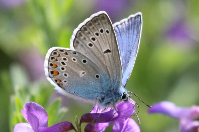 メモmemo : ユーラシア大陸に広く分布しています。大型で美しいシジミです。背面のブルーは外縁部が少し影が入り、後翅翅裏肛角部付近のオレンジとその内側の黒点列がかなり接近しているのが特徴です。