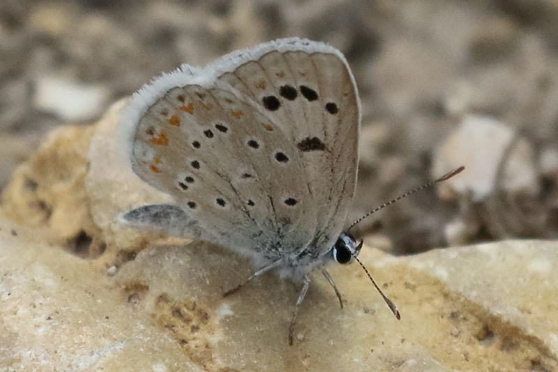 メモmemo : イベリア半島付近だけに生息する蝶で、前翅裏の黒点が発達しています。素早く飛び回り、すぐに見失ってしまいました。