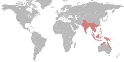 亜種spp : dubiosa (New Guinea, N.Australia - New South Wales (Coffs Harbour)) eborata (Solomons) indica (Ceylon, India, Sikkim, Assam, Burma, Thailand, Yunnan) lumpura (Peninsular Malaya, Singapore, Sumatra, Borneo, Philippines) subardates (Java, Sulawesi, Sangihe, Talaud, Tanahjampea, Kalao) asbolodes (Hainan, Hong Kong, Taiwan)