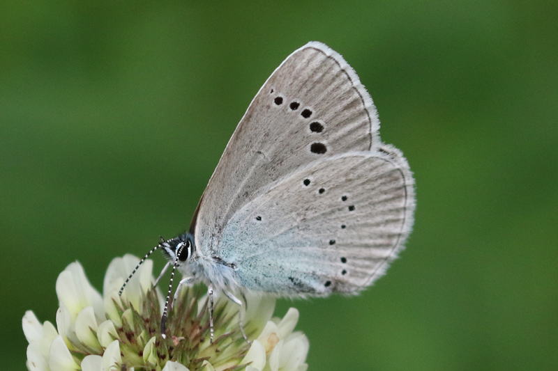 年1回6月から8月いっぱいまで見られます。翅裏の黒点列が一列なのが特徴です。♂の翅表はブルーが発達し、♀は未発達で茶色っぽいものが多いですが、北海道東部には♀でもブルーが大きいものもあって、別亜種tomarianaとされることもあります。国外ではユーラシア大陸の東部に見られます。