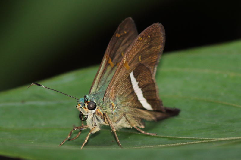 メモmemo : 短い尾と後翅裏の白帯、前翅翅先の流れる白点などが、Aguna 属の特徴です。同定には白帯の太さや形、前翅紋の位置などを詳しく見る必要があります。