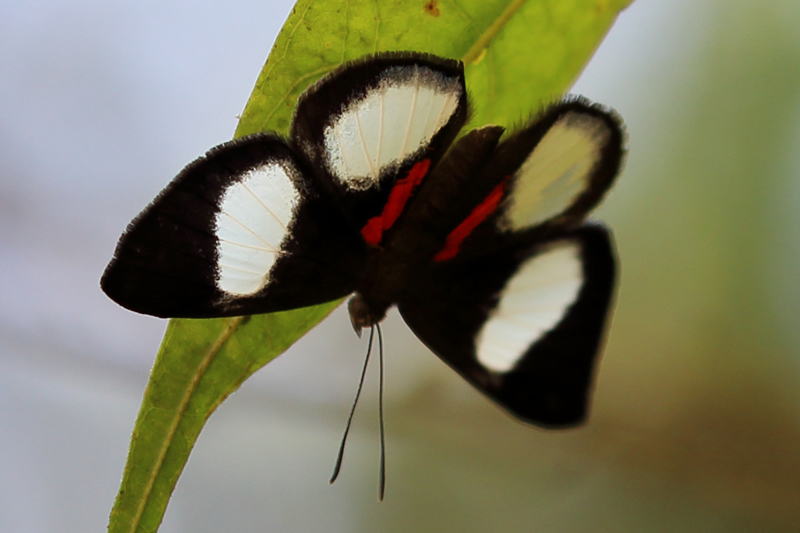 メモmemo : ペルーで出会いました。白紋が大きく、後翅内縁に赤線があります。属名がCalospilaからCallionaに変わっています。