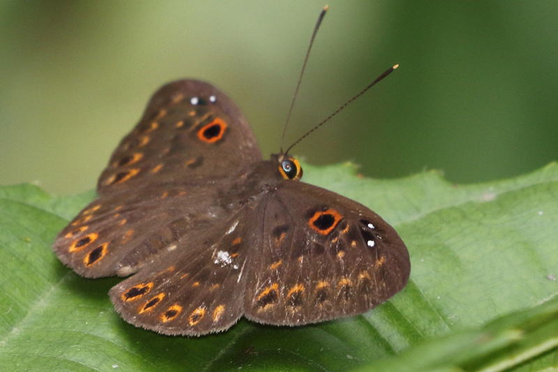 メモmemo : エクアドルでは川沿いの林縁の葉の上に止まっていました。その後の出会いはいつも葉の裏なので撮影がたいへんでした。