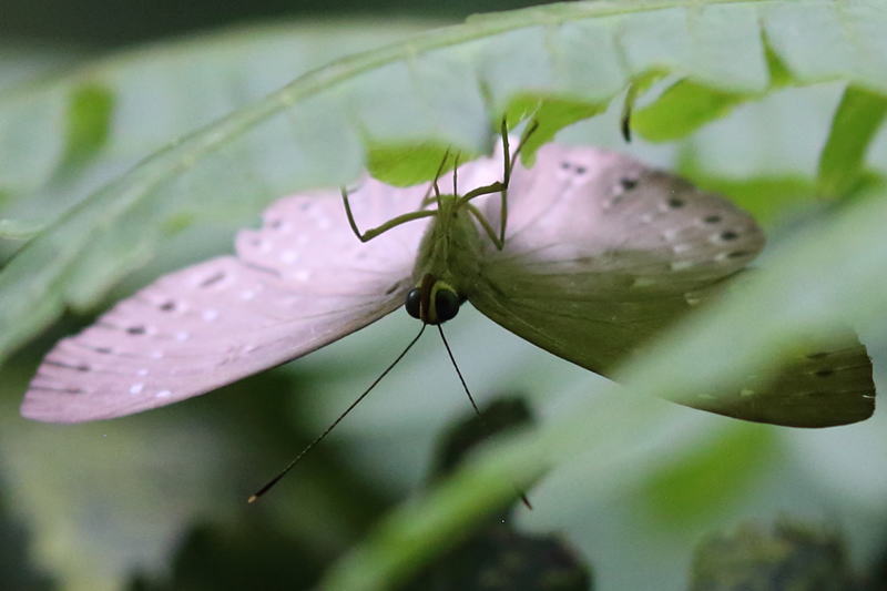メモmemo : ペルーでであいましたが、葉の裏に隠れていて、まともな写真が撮れませんでした。パナマでも同様でした。前翅中室の目玉模様がないのが特徴です。