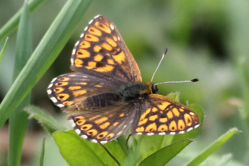 メモmemo : ヨーロッパで見られる唯一のシジミタテハです。色や模様など、ヒョウモンモドキの仲間によく似ています。