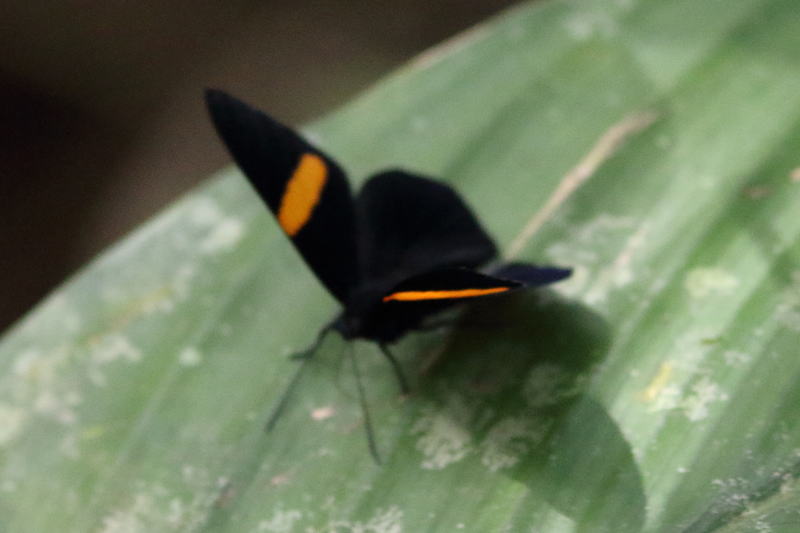 メモmemo : 黒にオレンジタスキという図柄はタテハチョウの仲間には多いようです。シジミタテハではオレンジの形や位置が種によって様々に変わります。