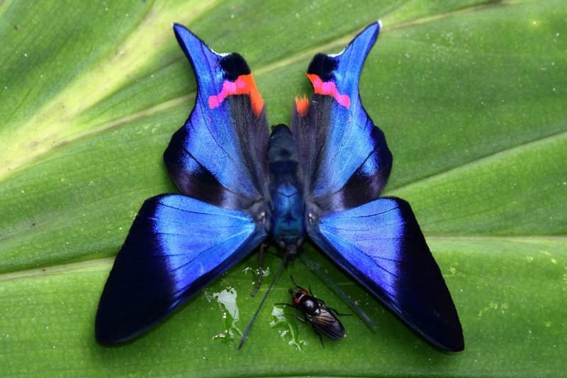 メモmemo : Rhetus periander との違いは前翅外縁の白帯がなく、尾の先に白点があるところなどです。(ずっと種名をdysoniとしていましたが、正しくはdysoniiとiを2つ重ねることに気づきました。このようなiが1つなのか2つなのかの間違いは結構ありがちです。ネットで検索するとき、i1つでもi2つを網羅できますが、i2つではi1つを弾いてしまうので注意が必要です。)