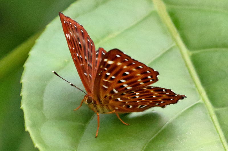 メモmemo : 中南米で繁栄を誇るシジミタテハRiodinidaeの仲間は、東南アジアにも数種が分布しています。初めてボルネオで出会ったときは、敏感ですぐに飛び去ってしまいました。香港では花に来ているところを観察できました。タイで出会った本種の亜種は翅が角ばっている印象でした。