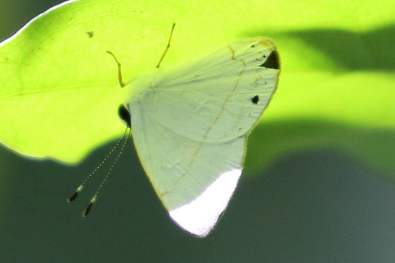メモmemo : 翅裏はウラギンシジミCuretis acutaのように白く、薄茶の細いラインと黒点があります。1つだけ大き目の黒点があるのも特徴です。